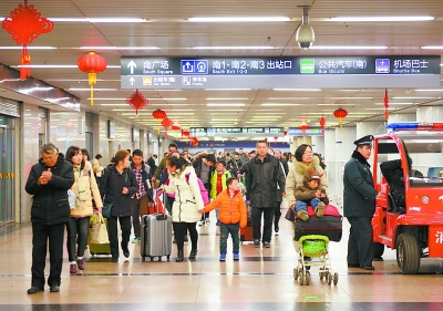 昨天下午,北京西站出站口的交通换乘大厅内,大量回家过年的旅客乘坐火车返回。本报记者 和冠欣摄 昨天,铁路客流依然处于返程阶段的高位运行状态,各大火车站内都是人头攒动,大批集中到京旅客从各个出站口涌出。据悉,北京西站地铁从初六开始已在每天早上加开两趟列车,每日21时后增开多趟地铁临客。同时,地铁根据客流状况阶段性限流。 昨日14时,西站地下二层的地铁进站口外排队等待进站的旅客已经沿着栅栏排了近百米的S形长队。地铁开始对进站旅客限流。站内广播循环呼吁旅客尽量乘坐地面公交,希望从南北广场分流旅客。 西站地区管委会相关负责人介绍,从大年初二开始,西站地区客流明显回升。大年初四,西站地铁进出站客流迅速增加,限流次数增多;出租车也全天候供不应求,打车旅客排队等候时间延长。地区安全、运力接续、秩序管控等工作面临严峻考验。为应对高峰人群,出站大厅东西通道从初六起改为单向通行,结合客流情况实时动态调控。 据统计,西站近三天的下车单日客流都突破20万人次,高峰时达到24万人次。其中60%涌入地铁,22%乘坐出租车。 西站地铁站相关负责人介绍,该站从初六起每日8时至8时30分,都要进行早高峰限流措施。由于地下的站台层狭窄拥挤,只能通过工作人员卡控,让已刷卡进站的旅客在进站层等候,分批分拨让旅客下到站台层乘车。此外,在到站客流集中时段,由于安检能力有限,也只能采取分批放行的限流措施。地铁已增开了多趟临客。正月初八,21时后的临客已增发到7列。今后几天,每日将继续增加临客。 西站地区管委会相关负责人和地铁负责人都表示,由于到达旅客集中,且携带行李众多,对地铁安检造成巨大压力,希望旅客尽量到地面乘坐公交车,分散地铁压力。 相关新闻 下周本市交通将恢复至节前状态 本报讯(记者 孙宏阳 通讯员 王寅虎)记者昨日从交管部门了解到,下周一,随着全市中小学正式开学,全市早晚高峰交通压力将明显增大。同时,交通场站、进京高速公路将再迎返程高峰,全市交通将恢复节前状态。下周四是元宵佳节,晚高峰将提前到来。 交管部门介绍,3月1日是中小学集中返校日,适逢周日车辆不限行,上午时段学校周边道路交通压力较为突出。下周一开始,接送学生的车流将迅速增加,同时,返乡、出游的市民也已陆续返京,预计本市交通将告别“节日状态”,逐渐恢复到节前水平。 交管部门预计,早8时至晚8时30分之间全路网都比较繁忙,而早7时至8时,下午4时30分至5时30分,校园周边道路易出现车行缓慢的情况,如东二环广渠门桥区、西三环花园桥至航天桥、北四环中关村桥区等区域,以及复兴路的永定路口、玉泉路和海淀区北部的万泉河路、圆明园西路、天秀路口、农大路口等。 下周四适逢元宵佳节,晚高峰将提前,全市交通流量将从中午开始上升,15时至18时,全路网交通压力最大。当日早间前往八大处、雍和宫、潭柘寺、白云观的车流会相对集中。晚间市民购物、聚餐、探亲访友等活动将有所增加,商圈、景区及餐饮集中区周边道路容易出现车行缓慢的情况。 随着正月十五的临近,下周将迎来春节假期后又一个返京高峰期。交管部门提醒,早7时至8时、12时至13时,北京西站处于接送站高峰期间,周边的莲花池东路、莲花池西路,以及西三环莲花桥区容易出现车行缓慢的情况。莲花池东路东向西车行缓慢时,过境车辆可以绕行广外大街、广安路、丽泽路,莲花池西路西向东车行缓慢时,过境车辆可以绕行京港澳高速、复兴路。 另外,从今年正月初五、初六高速公路运行情况看,京藏高速、京港澳高速、京开高速、京承高速返京交通压力最大。交管部门介绍,当京藏高速交通压力大时,可以提前绕行京新高速;当京港澳高速交通压力大时,可以提前选择京昆高速或107国道绕行;当京开高速交通压力大时,可以提前绕行106国道进入京开辅路通行。 阅读完标题为(应对返程高峰 地铁加开临客)的文章后,{www.bjxxg.cn}小编为大家推荐更多相关文章,千万不要错过哦! (责任编辑:北京纪事) |