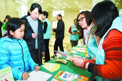 昨天,首图文化志愿者帮助一名小学生登记交换图书。首都图书馆的常态化图书交换志愿服务项目每周末在首图及部分区县馆举行,为读者搭建起分享阅读、交换快乐的文化平台。 邓伟摄 离服务时间还有半个小时,市委副书记吕锡文等市领导已来到首都图书馆,提前开始志愿服务。 昨天是2015年北京学雷锋志愿服务推动日活动启动后的第一个周六。市委副书记吕锡文,市委常委、宣传部部长李伟,市委常委、北京卫戍区司令员潘良时,市人大常委会副主任唐龙,副市长戴均良等来到首都图书馆,穿上“首图文化志愿者”的服装,悄悄走进四层借阅室,每人推着一小车读者归还的图书,分类上架。 看标签、对编号、找书位……吕锡文已经是首图的“老志愿者”了,驾轻就熟,准确地将图书一一归位。 在人物传记、文史地理、经济等各类书架前,李伟、潘良时等市领导也认真地整理书籍。 放好书籍后,市领导还与志愿者一起推来移动点检车,读取书架书层号、图书封底射频标签,确认无误后,录入电脑检索系统。市领导和志愿者们认真地将图书一一扶正,并用“磕书板”将图书码放得“一线平”。 截至去年10月,本市已有注册文化志愿者33035名、志愿团队332个;首图分中心的“语你相通”手语服务、图书交换、讲故事人等9个志愿服务项目颇受欢迎。 昨天,市直机关志愿服务联合会也开展学雷锋志愿活动,以此带动机关党团员志愿服务常态化。市委办公厅等20个单位的100多名志愿者,走进社区,为居民提供政策咨询、公益宣传等服务。 目前,全市注册志愿者超过248.8万人,志愿服务团体达4万余个,志愿服务项目4.6万余个,首都志愿服务实现制度化、常态化发展。 阅读完标题为(市领导周末进首图志愿服务吕锡文参加)的文章后,{www.bjxxg.cn}小编为大家推荐更多相关文章,千万不要错过哦! (责任编辑:北京纪事) |