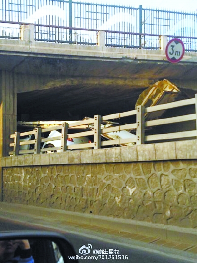 本报讯(记者张硕)大货车超高,就在车顶与桥相撞的那一刻,恰逢一辆小轿车从旁边驶过,结果被撞出来的车厢碎片以及车内的一些货物砸个正着,幸运的是车上的人都没有受伤。昨天下午,这一幕就发生在西四环丰益桥南侧的铁路桥下。 记者在现场看到,当时撞桥的大货车是行驶在丰益桥南侧铁路桥的内环辅路上,此时大货车已被拖出桥下。这是一辆厢式冷藏车,车上的厢体已经散架,露出了里面的冷风设备,以及车厢中成箱的肉制品。 一旁限高3米的铁路桥下,散落着近一人高的车厢碎片,以及掉落的货物。司机小伙子说,他驾驶这辆山东牌照的大货车,往北京拉货,但并不清楚目的地,所以要随时和老板通电话。昨天下午3点多开到桥下时,感觉有些犯困,当时没有意识到车辆可能超高的问题,“估计超高差不多20厘米吧。” 就在车厢与桥体相撞的一声巨响后,司机猛然清醒,他从反光镜里清楚地看到,自己左侧的一辆小轿车,被撞碎的车厢碎片以及散落的货物盖住了。司机赶紧走下车,看到小轿车里坐着三个女子,都吓得脸色发白。好在散落的车厢碎片和货物并不太重,小轿车只是被砸出了几个坑,车里的人没有受伤。 “她们挺好的,看我跑长途,觉得我不容易,也没难为我。警察到场后,她们就把车开走找地方定损修车去了。”司机说,“想想也真后怕。”按理说,开货车应该至少两个司机倒班,可是昨天早上,另一位司机临时辞职,他又怕耽误了业务,只能自己独自开车上路。“我再也不开车了,这工作太辛苦,太危险。事情解决完,我就回老家去找个别的工作。” 文并摄 J233 阅读完标题为(大货撞桥殃及小轿车 所幸没人受伤)的文章后,{www.bjxxg.cn}小编为大家推荐更多相关文章,千万不要错过哦! (责任编辑:北京纪事) |