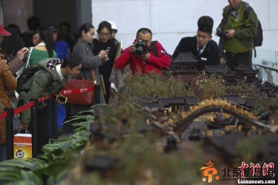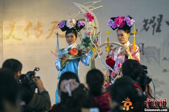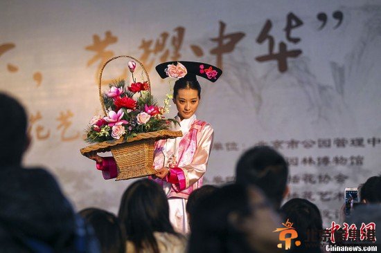 11月19日,作为两岸四地插花艺术交流活动的一部分,一场难得一见的服饰花艺表演秀在北京中国园林博物馆上演,正式拉开该馆免费向社会开放的序幕。作为公益性永久文化机构单位,馆内除原有6个基本陈列、3个室内展园和3个室外展区继续展示不变外,引进多项专题展览和展示活动继续免费供游客参观。中新社发 富田 摄
