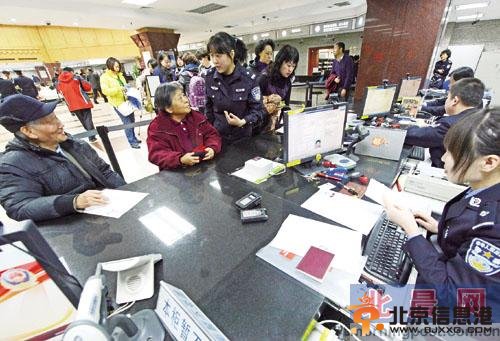 昨天上午,北京晨报记者来到市出入境管理总队接待大厅,在27号窗口有两位白发苍苍的老者正在办理出入境证件。这对老夫妇是和子女到香港旅游,之前就办理过港澳通行证但已