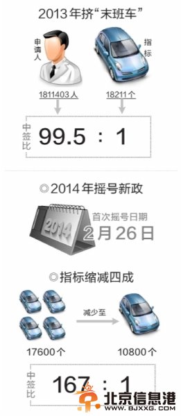 今天上午10点,首都之窗将网络直播摇号现场。摇号工作结束25分钟后,可通过www.bjhjyd.gov.cn查询摇号结果,一小时后也可通过拨打电话12580查询摇号结果。
